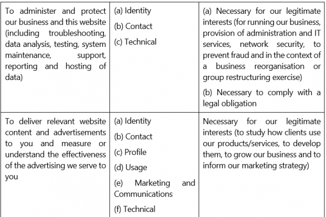 We have set out in the Annex to this Privacy Policy, a description of all the ways we intend to use any personal data, and which of the legal bases we intend to rely on in order to do so. We have also identified what our legitimate interests are where appropriate. You can obtain further information about how we assess our legitimate interests against any potential impact on you in relation to specific activities by contacting us.